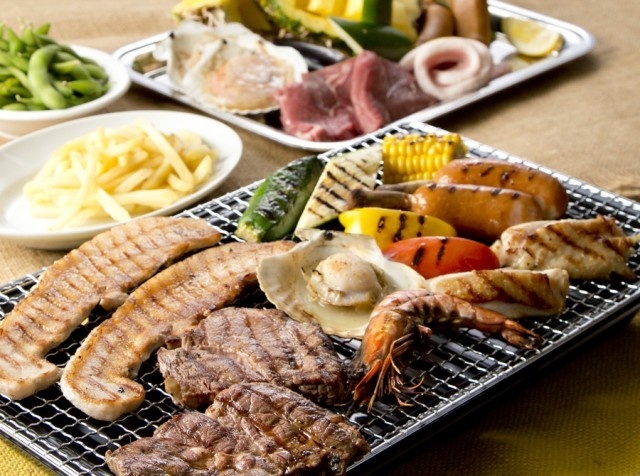 海辺の開放的な空間、アウトレット内という環境でのBBQはなかなかできませんよ!