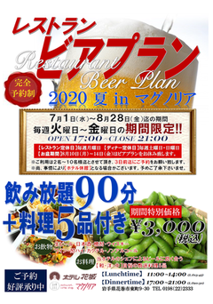 ホテル花城 4階屋上 レストランマグノリア ビアプラン2020
