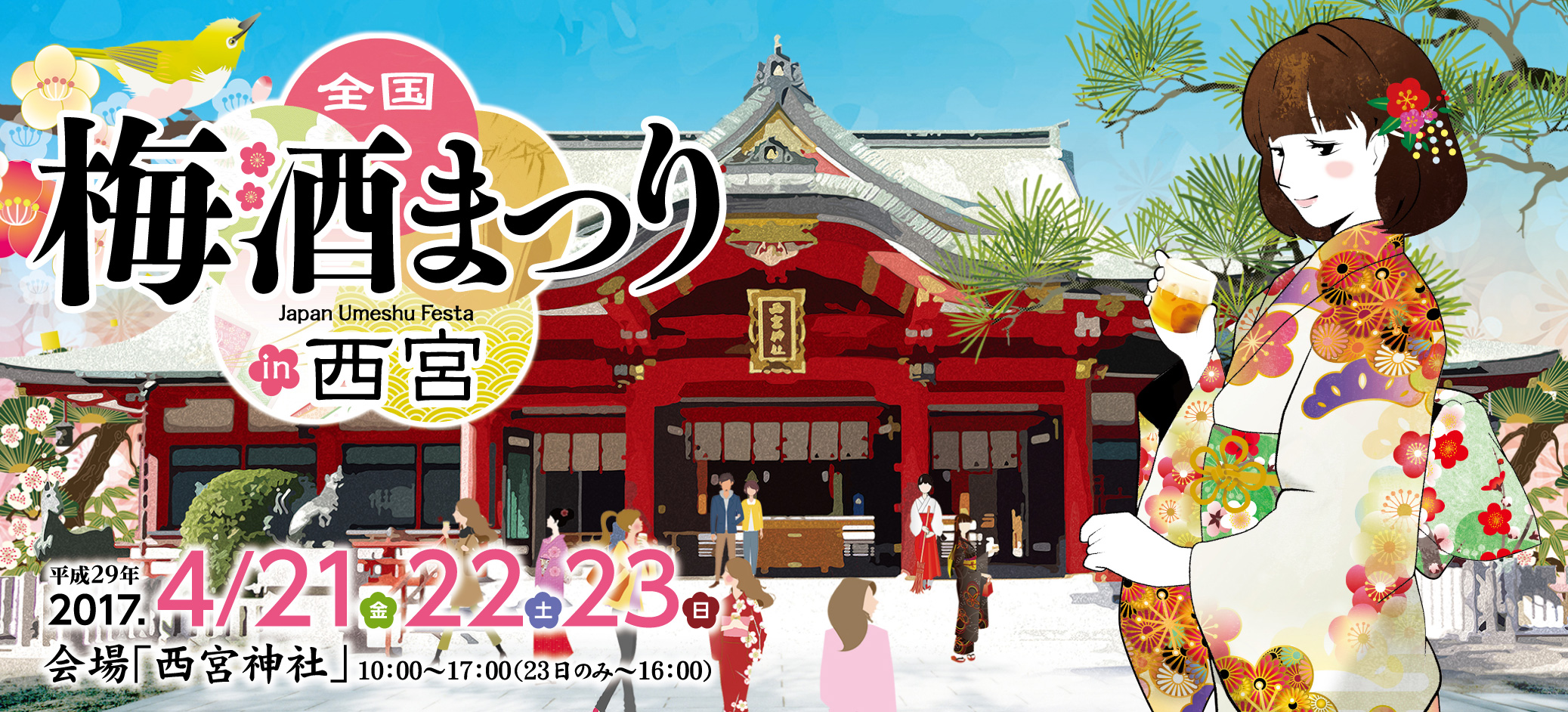 2017年 4月 21日 2017年 4月 23日 1100円(前売り) 1300円(当日) 飲み放題形式 西宮神社 0362281183 梅酒150種以上の飲み比べができるイベントです。 受付でカップを受けとったら30分間の飲み比べスタート! 全国梅酒即売会も行われるので、お好みの物を見つけてご自宅で楽しむことが出来ます。 【開催日時】 4月21日(金)10:00~17:00 4月22日(土)10:00~17:00 4月23日(日)10:00~16:00 category_event 近畿 イベント情報