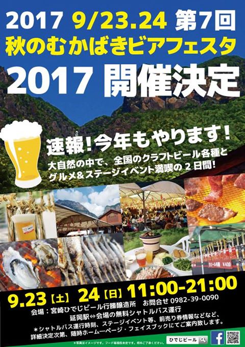 2017年 9月 23日 2017年 9月 24日 個別注文形式 http://hideji-beer.jp/mukabaki-beerfesta/ 宮崎ひでじビール醸造所 0982‐39‐0090 日時 9月23日~9月24日 11:00~21:00 category_event 九州・沖縄 イベント情報