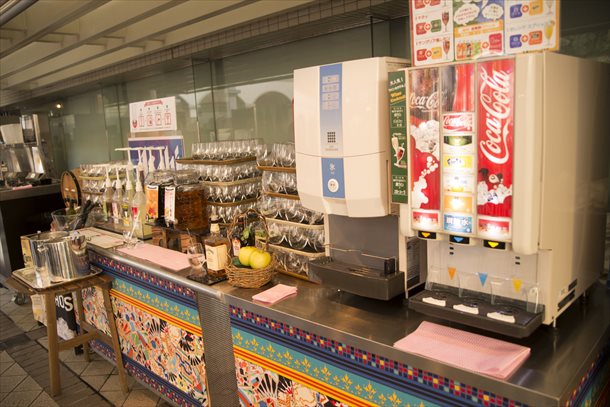 ドリンクスペースはお馴染みのトルネードディスペンサー、全自動サーバー、ワインやカクテルなどが飲み放題です。