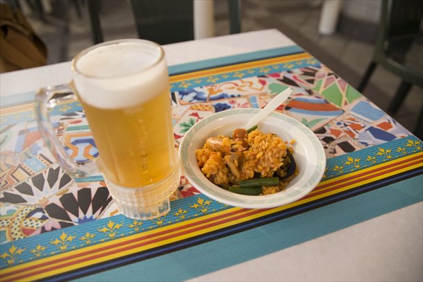 折角パエリア取り分けて頂きましたので一人ビールで乾杯です。 まあ、独りビアガーデンも悪くは無いかな…。笑