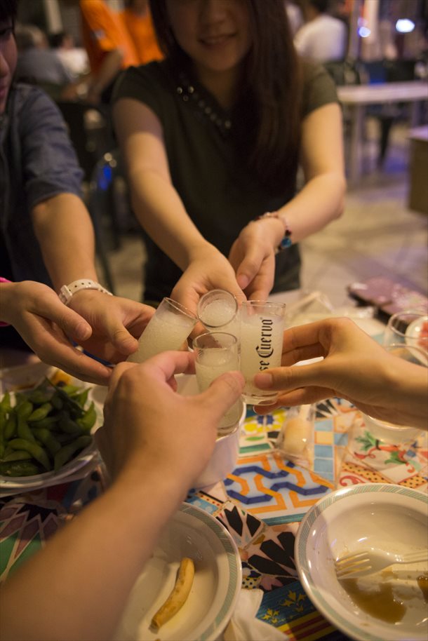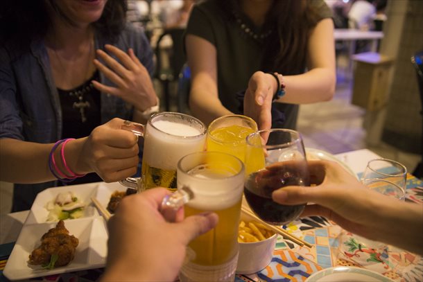 そんなこんなで、最後の一名到着。乾杯~!最大三時間ゆっくりできるので(7、8月の金曜のみ90分制)、集合時間がバラバラというような場合にも重宝するかもしれません。
