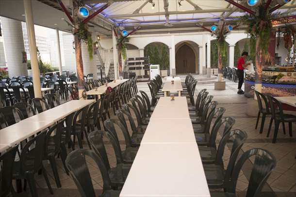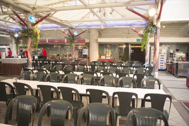 暑いのがどうしても駄目だという方には屋内スペースもあります。こちらは冷房が効いています。