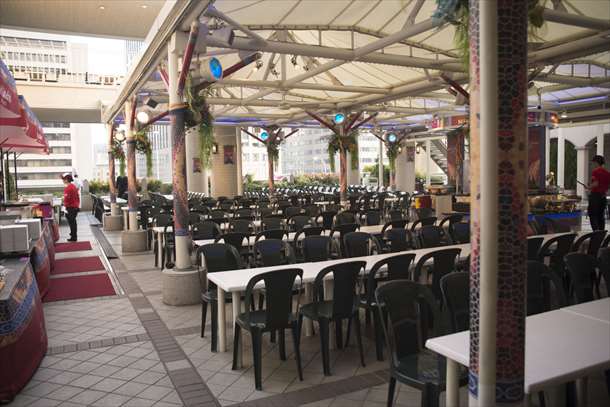 ビアガーデン自体は5Fスペースで開催です。500席ほどあり付近のビル街を望む都会的な空間になっていました。