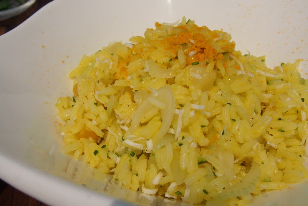 ココナッツ入りのターメリック(サフラン?)ライス。南国のお味で一気にハワイ気分になりました。