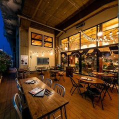 開放感抜群だとお客様から人気のテラス席。少人数でのご利用はもちろん、最大34名様までのエリア貸切が可能です。お気軽なお食事やランチなどでもどうぞ。