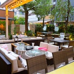 店内から覗く緑あふれるパリの公園を意識したフレンチスタイルビアガーデン女子会は勿論、デートにも最適!