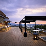 ヒルトップリゾート福岡で楽しめる「THE GARDEN BRASSERIE」は、空と風を感じる開放的なテラス空間が魅力のビアテラスです。ウッドデッキの先には福岡の街並みと豊かな緑が広がり、昼は明るく伸びやかな景色、夜は街を見渡す眺望とともに…