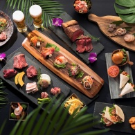 アマンダンスカイのテラスで開催のビアガーデンです. キリッと冷えたビールとBBQプレートと大満足の食べ放題ビュッフェがお楽しみいただけます。